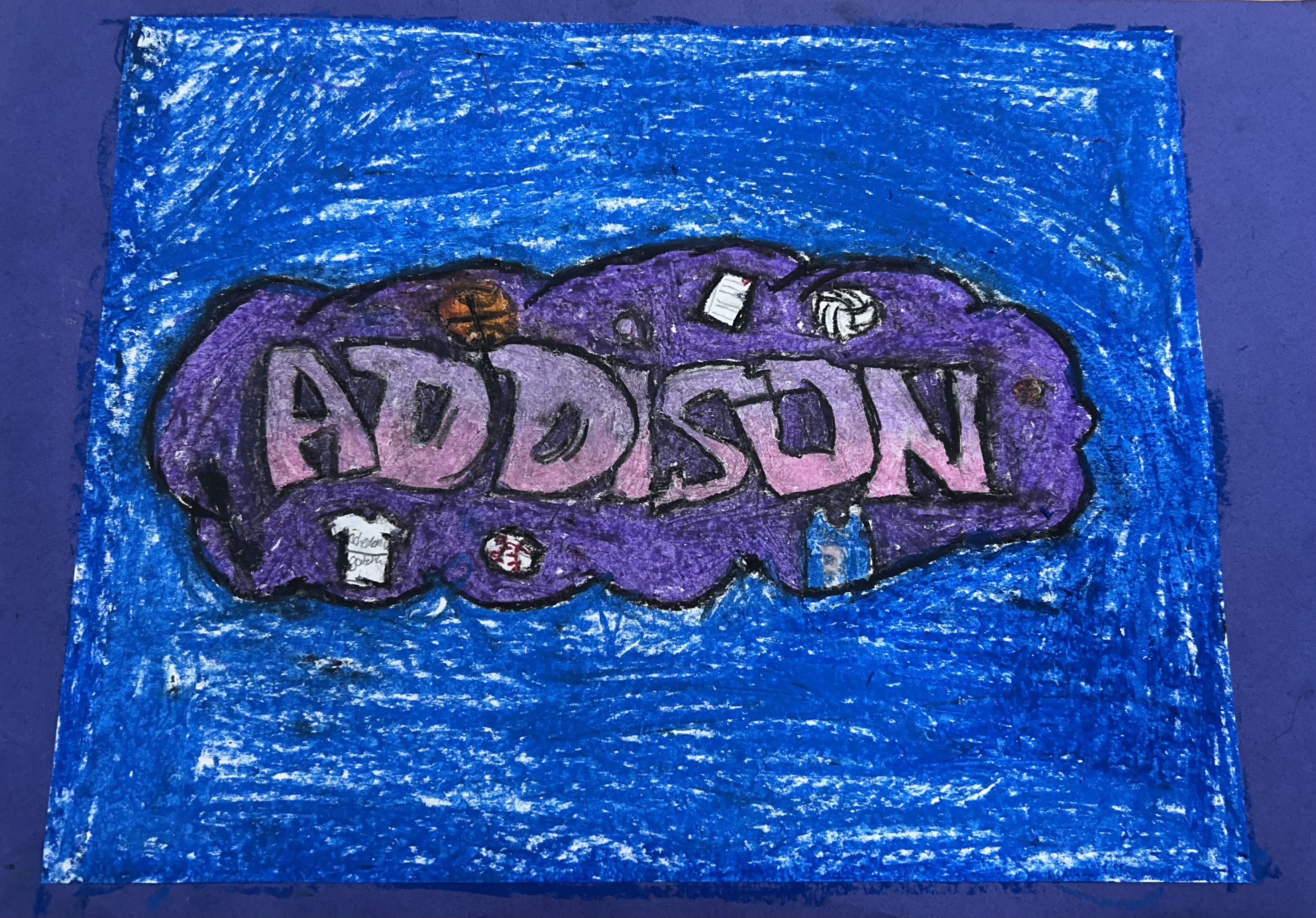 This week’s artist is Addison Anderson! She is always enthusiastic about any project that is planned, and works hard to achieve the best results. The Galena High School is very happy to showcase her artistic abilities this week! One of Addison’s best projects is a Graffiti art design using her name with designs around it. The assignment's focus was to use line, proportion and shape with Graffiti letters in a creative and proportional way. Addison is said to have handled the assignment with grace and ease, while encouraging her peers.
