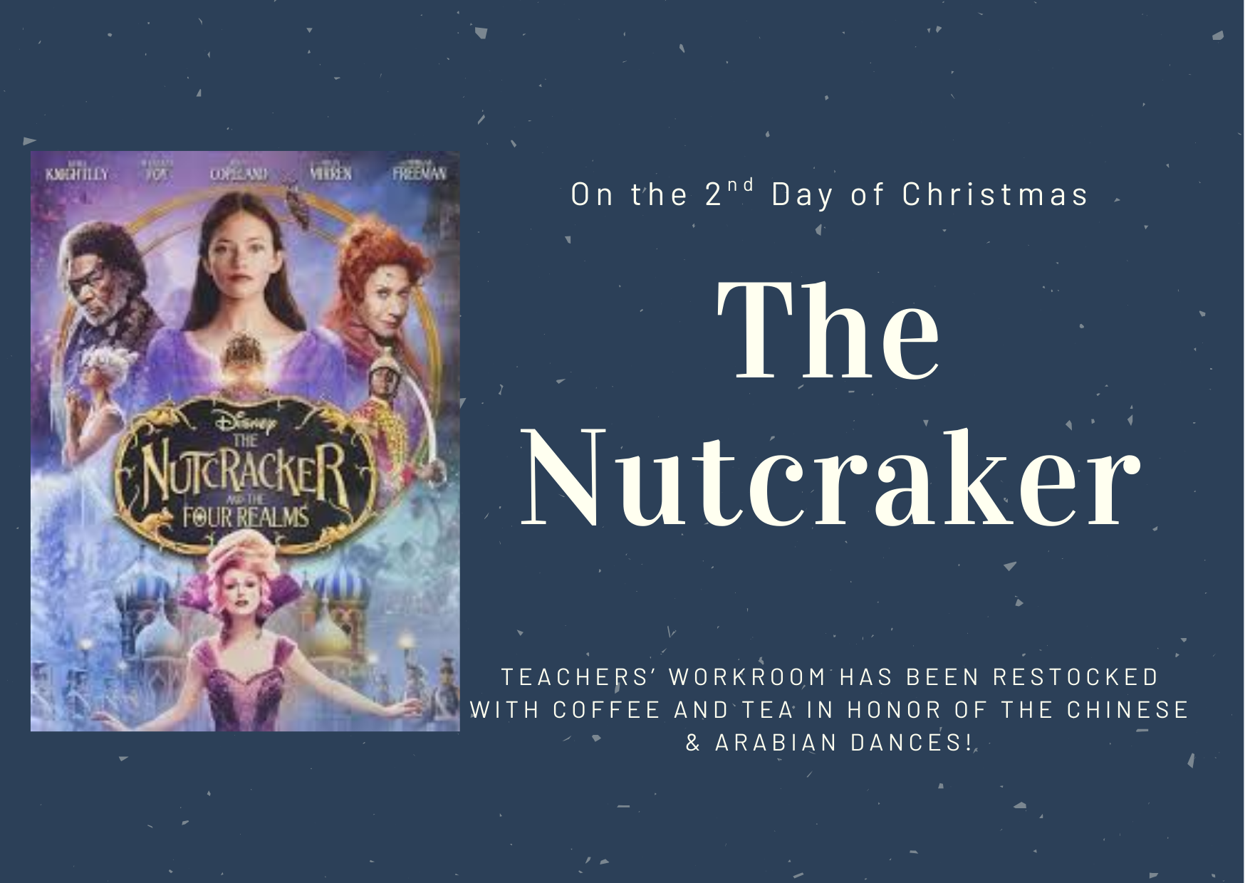 On the 2nd Day of Christmas the Office delivered fresh coffees and teas to the Teachers' Workroom in honor of the Chinese and Arabian Dances from The Nutcracker!
